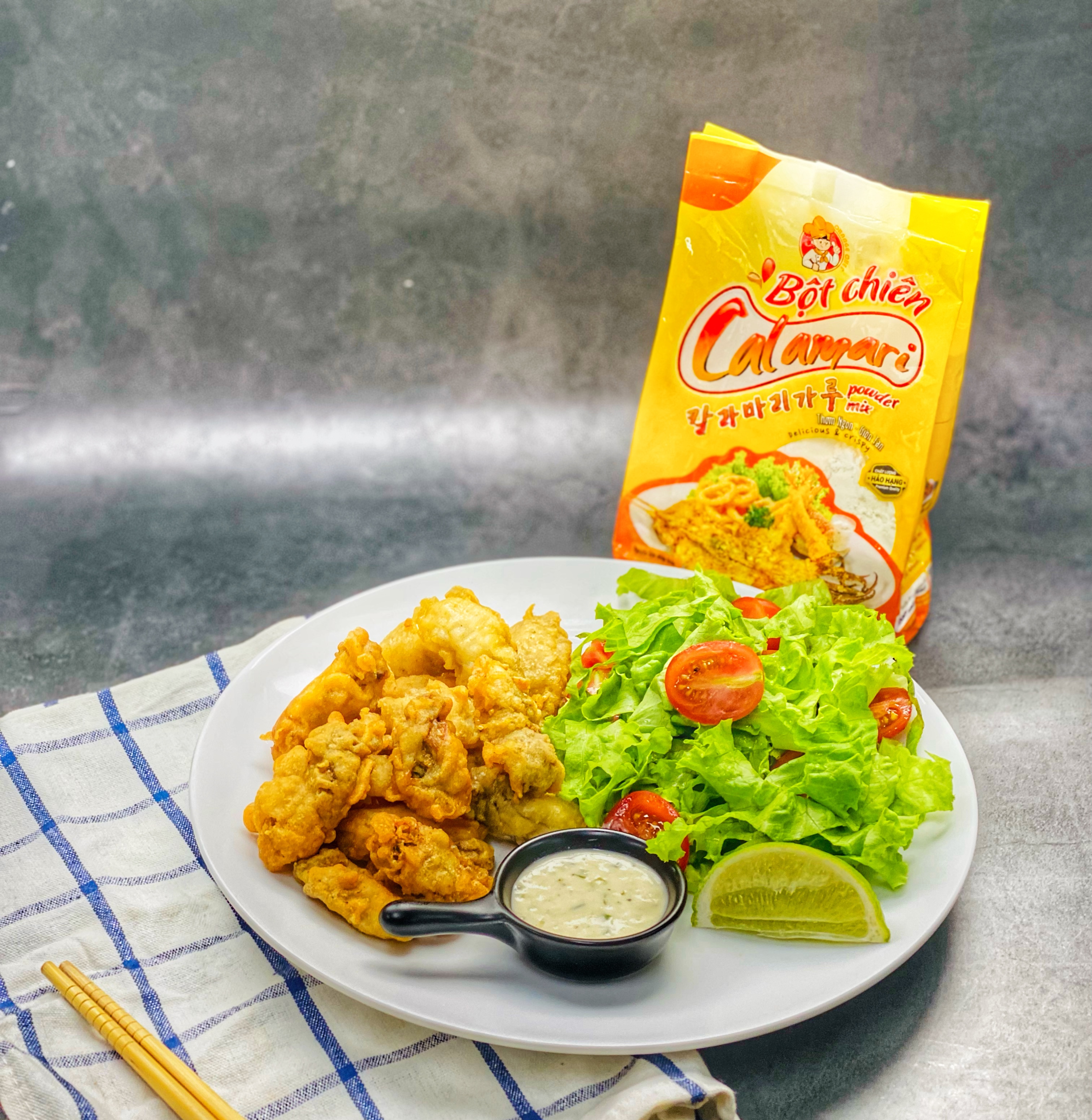 - Bột chiên Tempura Hải sản Calamari là sự kết hợp hoàn hảo các nguyên liệu theo công thức chuẩn nhất của Hàn Quốc, mang đến hương vị thơm ngon, giòn lâu mà không bị thấm dầu, đặc biệt làm mất đi vị tanh của hải sản.