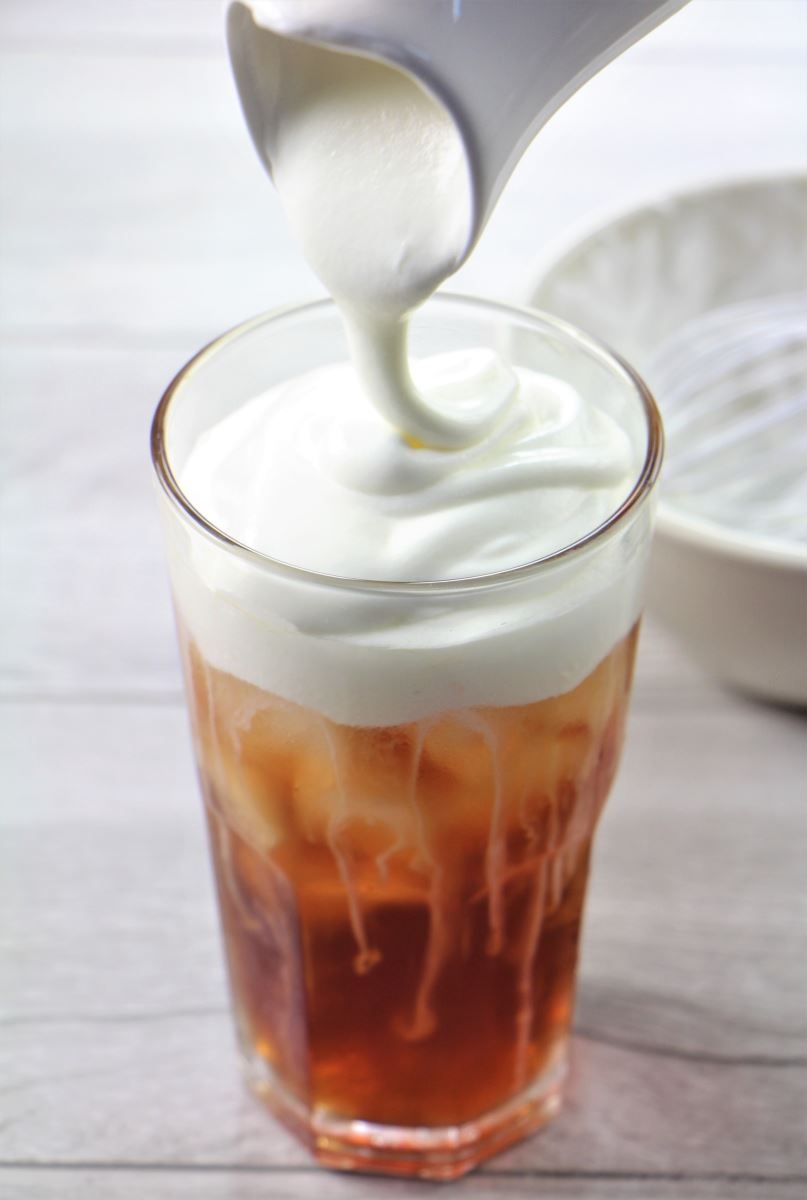 - Dễ pha chế, dễ bảo quản Không cần kết hợp với topping hoặc whipping cream (2 loại cream này cũng có thể tạo ra váng sữa, nhưng không bảo quản được lâu sau khi mở hộp), giữ lớp foam sữa đứng lâu hơn khi phủ lên các món nước như trà, cà phê…