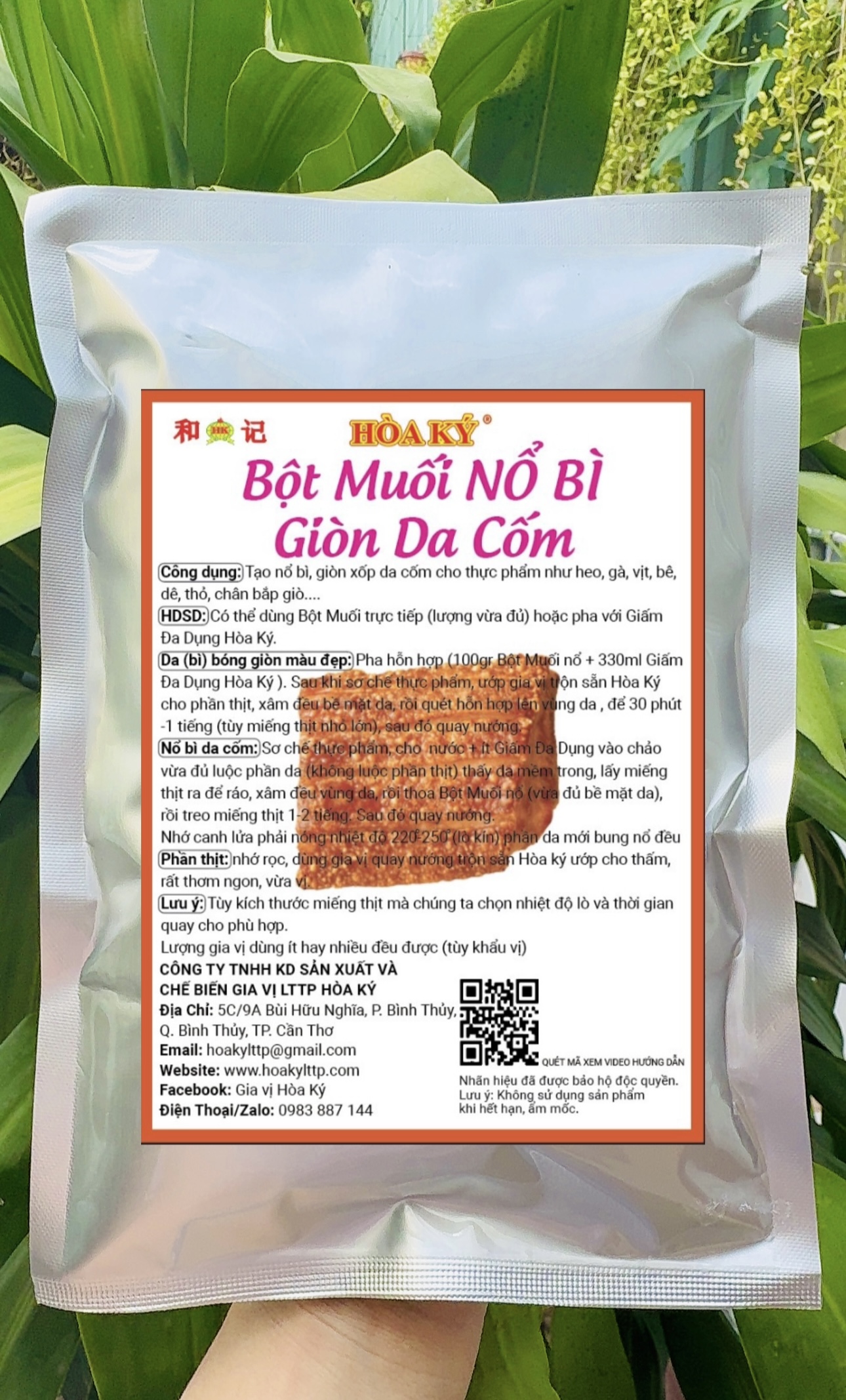 Quay da bóng giòn màu đẹp thì lấy Bột nổ pha với Giấm Đa Dụng Hòa Ký ; xâm đều bề mặt da, rồi quét đều vùng da cần nổ giòn, để 1– 2 tiếng hong gió ( tùy miếng thịt nhỏ lớn), sau đó quay nướng.