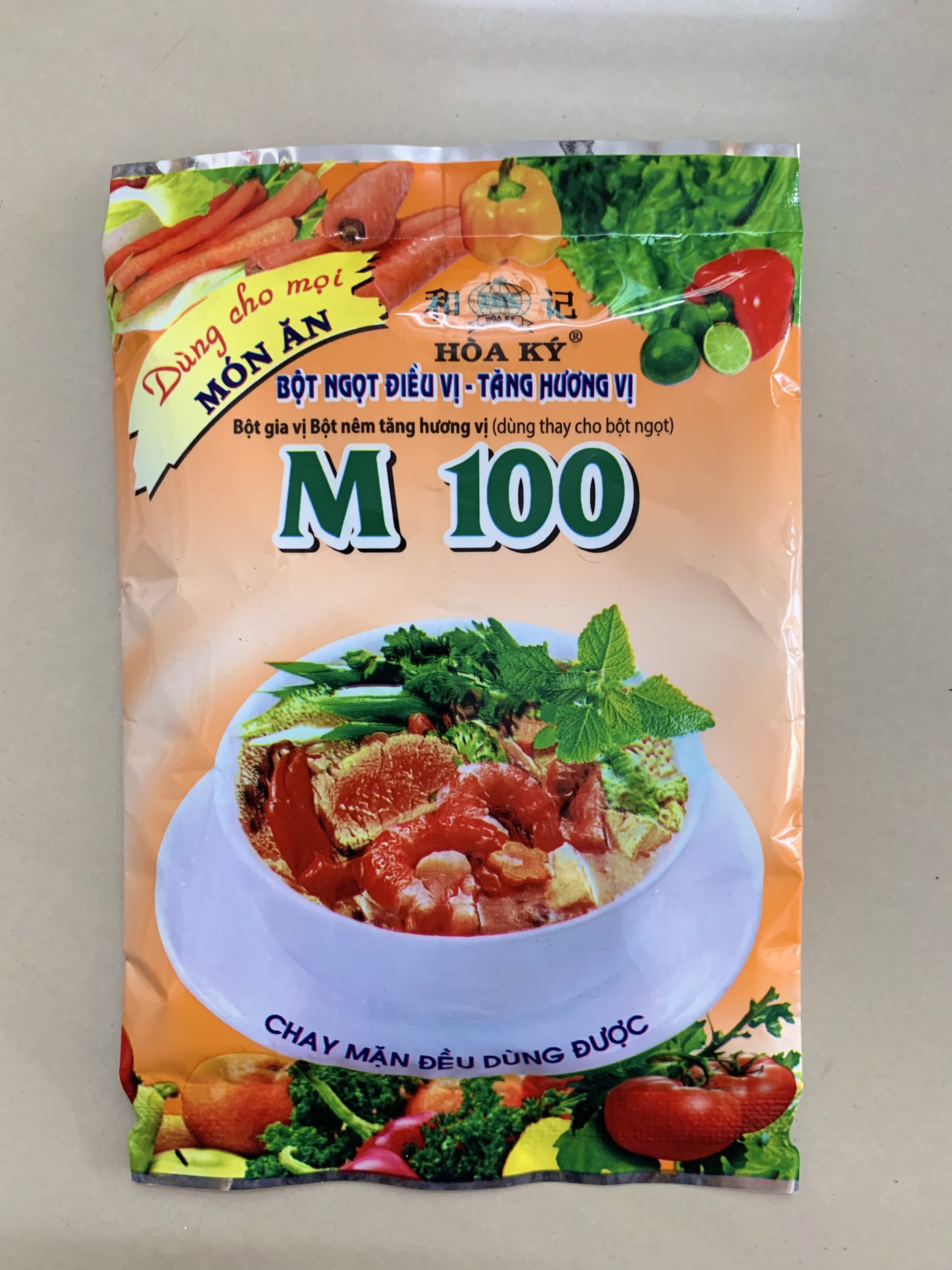 Bột ngọt điều vị tăng hương vị M100 là sản phẩm tiên tiến thế hệ mới dùng thay thế cho bột ngọt. Dùng M 100 các bạn sẽ được những lợi ích sau:Tính tăng hương: giúp cho các món ăn thơm ngon hơnTính đi...