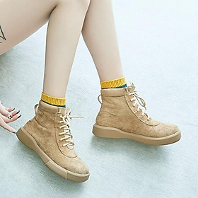 Giày bốt nữ cao cổ da mềm đế bẹt