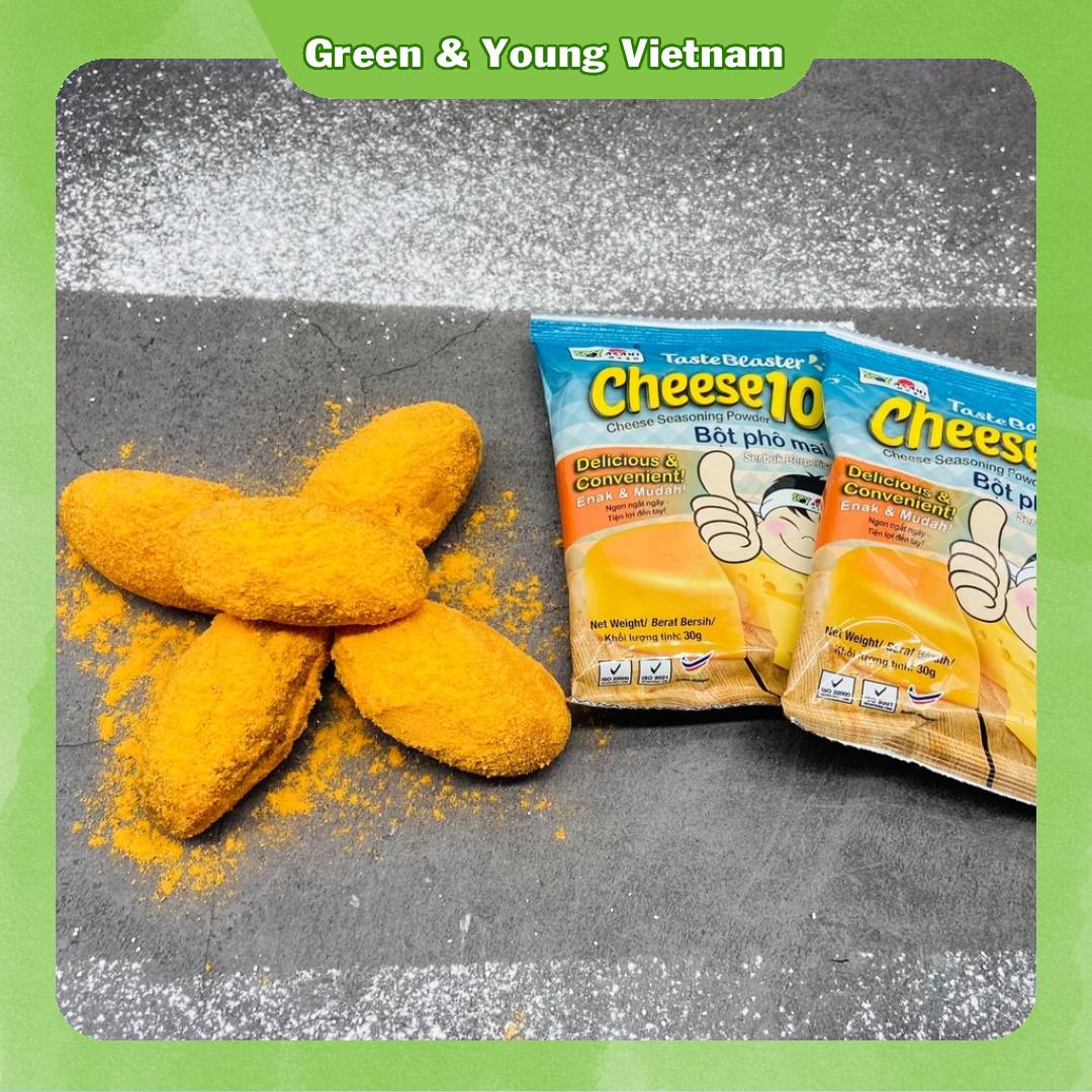 Mua tại TiktokMÔ TẢ SẢN PHẨM: Sản phẩm Bột Phô Mai Cam Malaysia Taste Blaster Cheeese 10 - 30g - thương hiệu Soy Asahi là dạng túi nhỏ của bột phô mai lắc VEROZYM nổi tiếng trên thị trường. Sản phẩm có màu cam bắt mắt, hương thơm hấp dẫn, vị mặn, ngọt, béo hài hòa phù hợp dùng trực tiếp trên nhiều món ăn: khoai tây lắc, khoai lang lắc, gà viên lắc, bánh tráng lắc, nui chiên, bánh gạo chiên, bánh phồng tôm chiên,... Ngoài dùng trực tiếp, sản phẩm còn có thể dùng làm nguyên liệu pha chế trà sữa phô mai, topping phô mai mặn,... Xuất xứ: Malaysia Khối lượng tịnh: 30 gram/1 gói - 18 gói/1 hộp Hạn sử dụng: 24 tháng