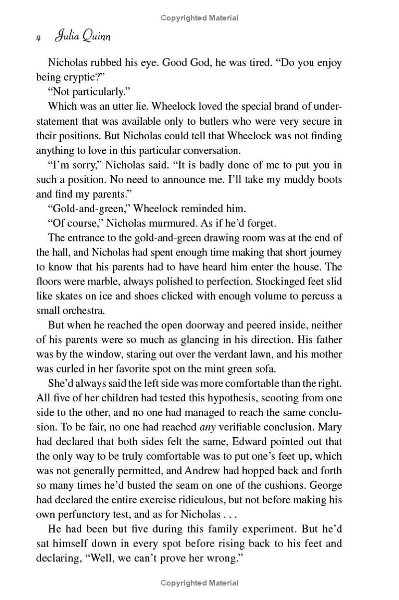 As the fourth son of an earl, Nicholas Rokesby is prepared to chart his own course. He has a life in Edinburgh, where he’s close to completing his medical studies, and he has no time—or interest—to find a wife. But when he discovers that Georgie Bridgerton—his literal girl-next-door—is facing ruin, he knows what he must do.