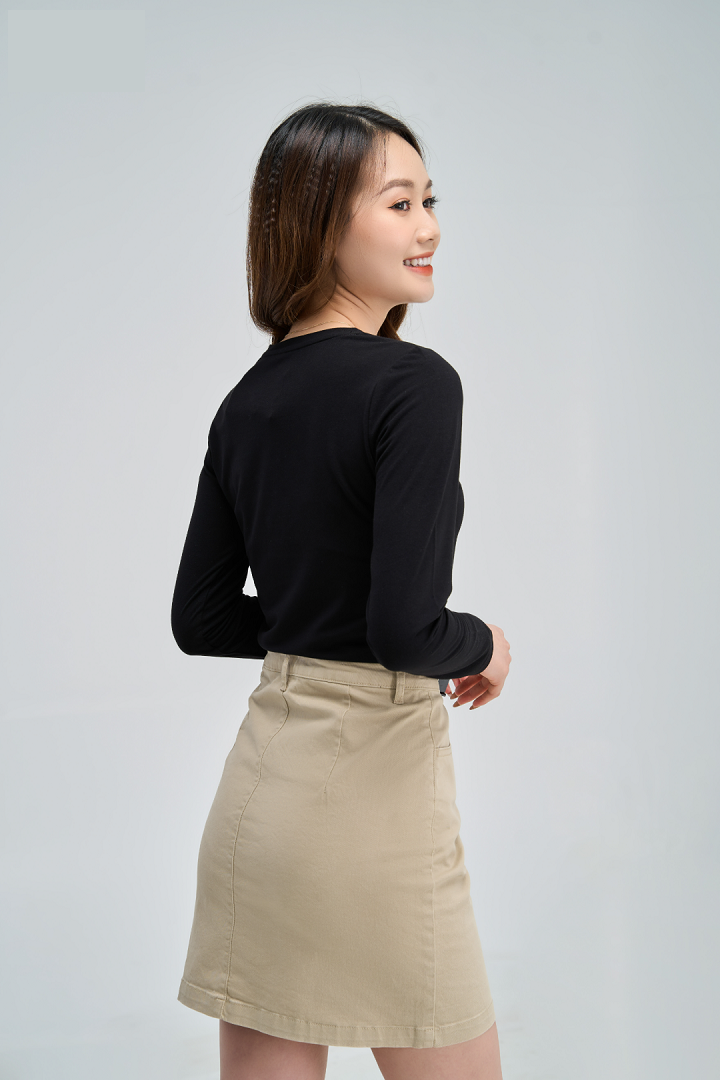 - Thiết kế cổ tròn, ôm sát cơ thể, dễ dàng kết hợp với nhiều loại áo quần khác nhau.