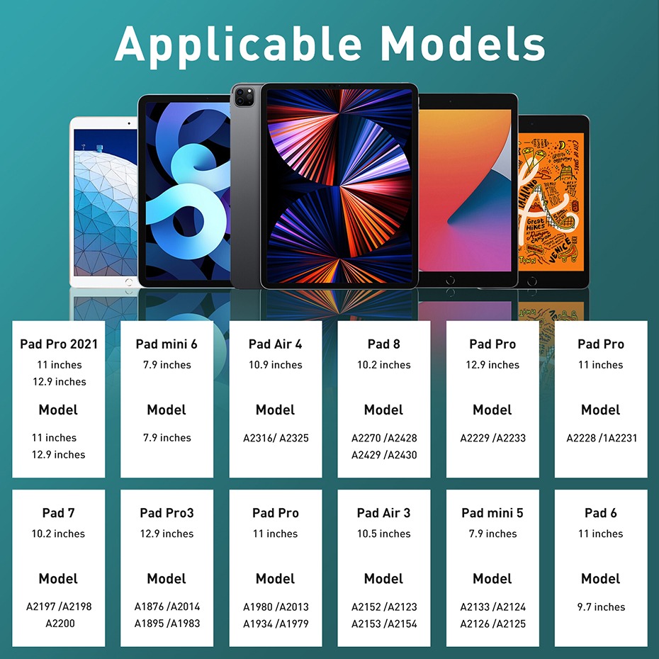 Được thiết kế cho các mẫu iPad 2018-2024 Bút cảm ứng cho iPad hỗ trợ cho các mẫu iPad series 2018-2024: iPad thế hệ thứ 6/7/8/9, iPad Air thế hệ thứ 3/4/5, iPad Pro 11/12,9