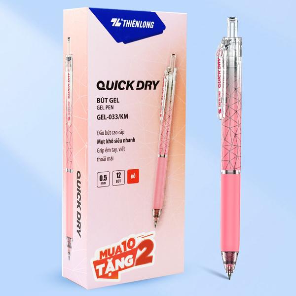 Mua tại TiktokBút Gel Quick Dry 0.5 - Thiên Long GEL-033/KM - Mực Đỏ
