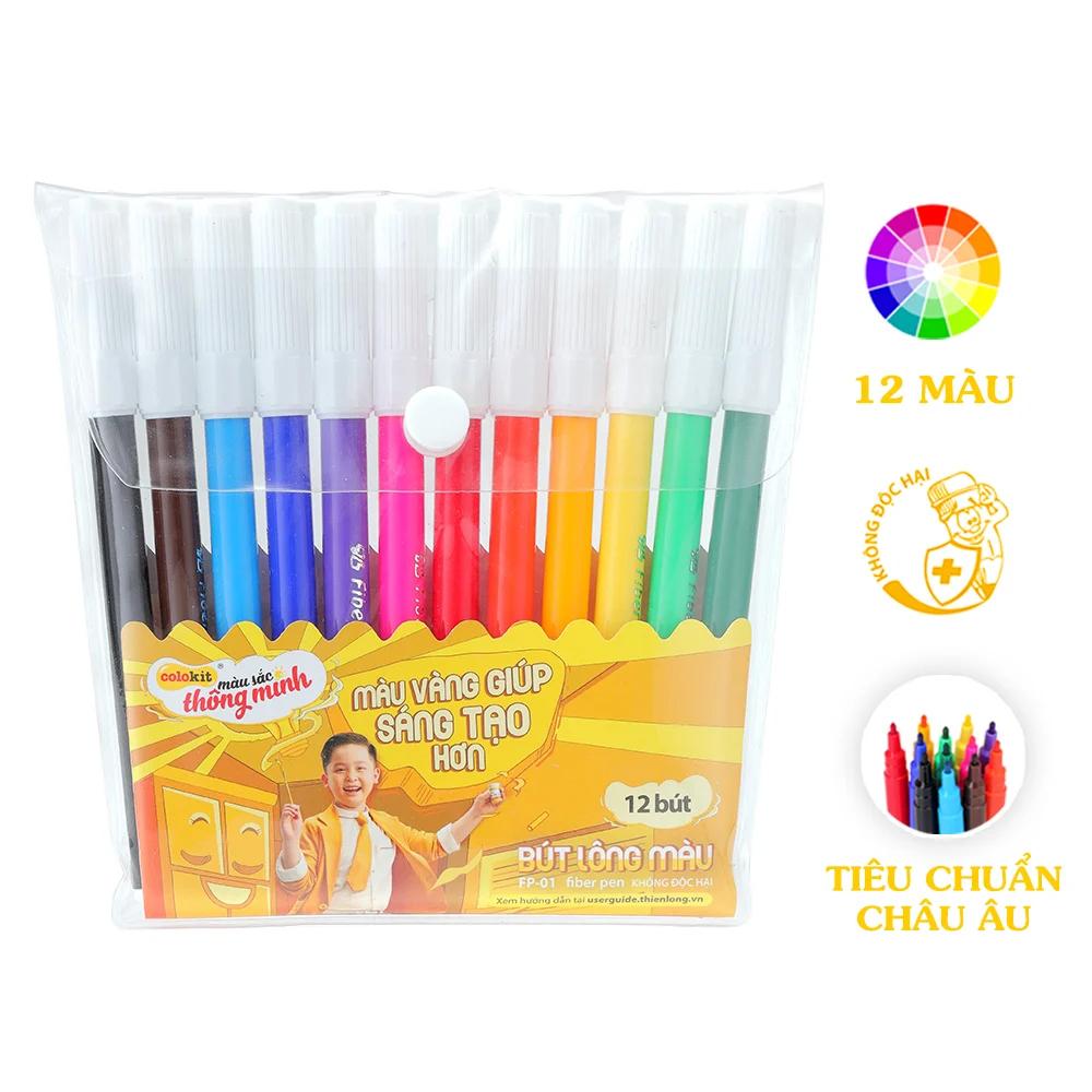 Bút Lông Màu Thiên Long FP-C05/DO (12 Màu) Bút Lông Màu Thiên Long FP-C05/DO (12 Màu) được sản xuất từ màu mực cao cấp, an toàn cho sức khoẻ trẻ nhỏ và cho mùi hương