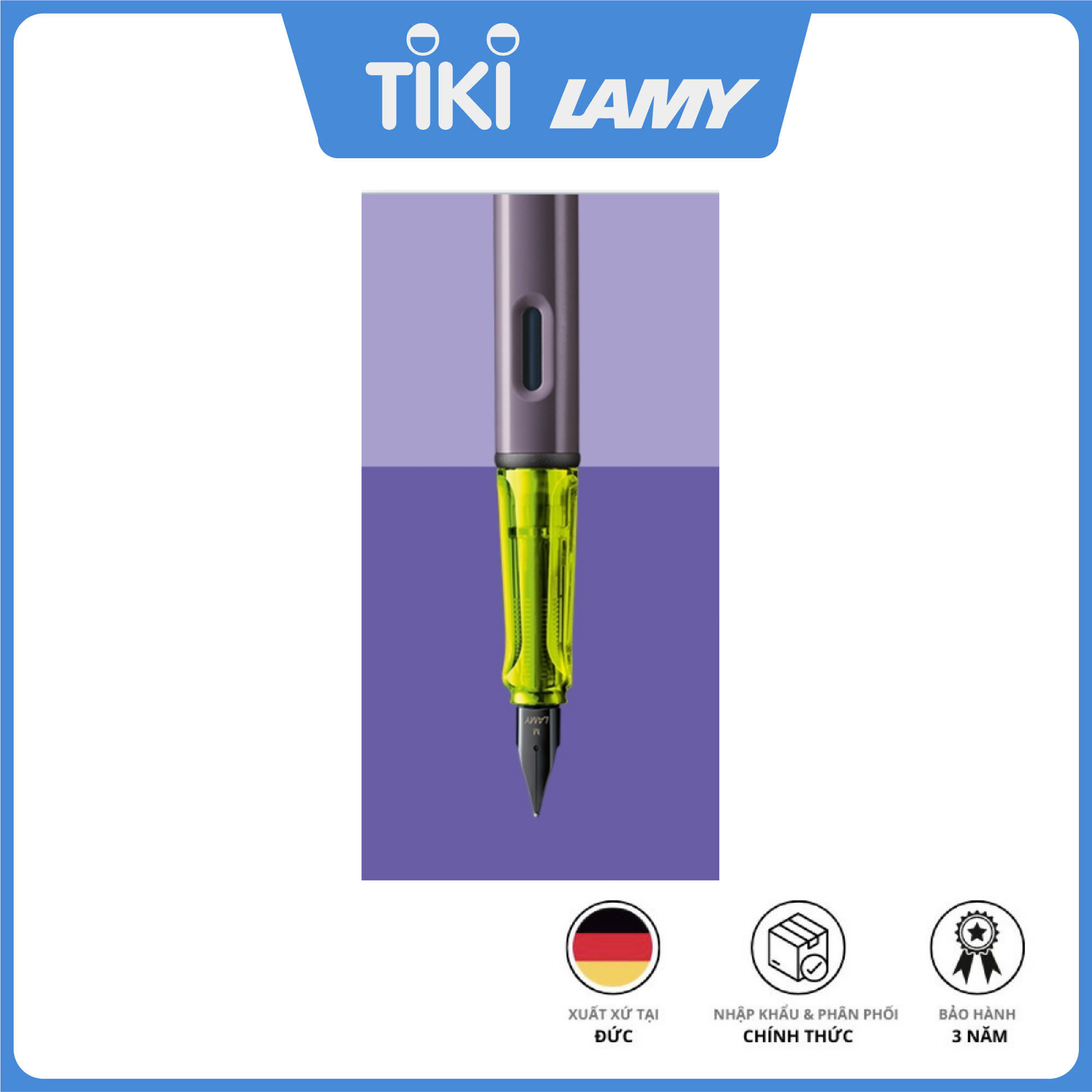 Bút Máy LAMY Al-star Màu 0D3-Lilac Bút máy LAMY Al-star là dòng bút máy thời trang với thiết kế đơn giản thanh lịch. Bút hoàn thiện trong một bộ vỏ nhôm màu với nhiều màu thời trang phù hợp với cá tính và phong cách riêng của bạn. Đặc biệt bút có ngòi thép cứng cáp bền bỉ, có thể thay đổi dễ dàng theo những nhu cầu sử dụng khác nhau. The light aluminum experience. Những người sử dụng LAMY AL-star đánh giá cao sự nhẹ nhàng đặc biệt của chất liệu mạnh mẽ nhưng bền bỉ của nó. Tay cầm trong suốt của bút giúp người dùng thấy được rõ ràng về hoạt động bên trong của bộ nạp mực. LAMY AL-star là sự kết hợp của các vật liệu tạo nên sự mạnh mẽ và sang trọng, loạt sản phẩm này mang đến nhiều bất ngờ với các phiên bản đặc biệt mang màu sắc hiện đại, hướng đến phong cách sống - truyền cảm hứng cho các nhà văn thể hiện cá tính đương đại của mình. Thiết kế bút giúp bạn có thể viết trong thời gian dài mà không bị mỏi. Vỏ bút cứng cáp được làm từ nhôm màu thời trang chất lượng cao với nhiều màu sắc cá tính để bạn chọn lựa và nắp được trang bị kẹp kim loại có tác động lò xo tự động được mạ crom. Đặc tính sản phẩm - Thương hiệu : LAMY - Xuất Xứ : Đức - Dòng sản phẩm : LAMY Al-star - Loại Bút : Bút máy - Kích Thước : 139 x 13 x 13 mm - Màu Sắc : Lilac - Chất liệu thân : Nhôm - Trọng lượng : 22g - Bảo hành : 3 năm - Loại bảo hành : Thẻ bảo hành và hóa đơn sản phẩm - Số lượng chi tiết trong bộ sản phẩm: 1 - Sản phẩm bao gồm: 1 bút máy Lamy Al-star và Hộp Bút Phụ kiện hoàn hảo kết hợp cùng sản phẩm: - Ống mực LAMY T10 -