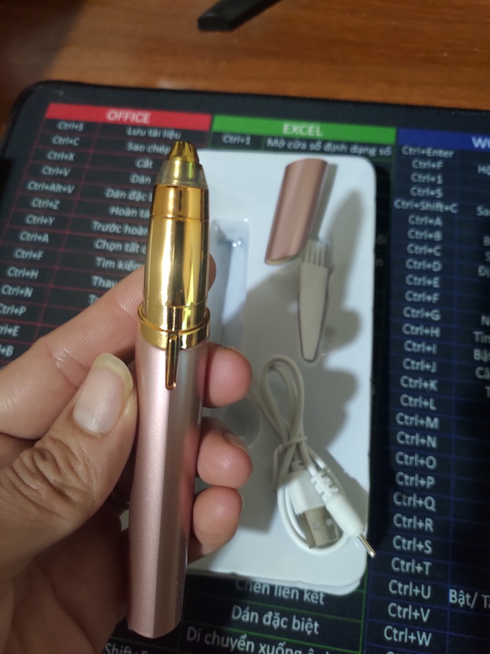 Bút Tỉa Lông Mày, Máy Tỉa Lông Mày Cao cấp ,Thiết kế Nhỏ gọn, đẹp, rẻ Đặc trưng: 1. Thiết kế dạng thỏi son, kích thước cầm tay. 2. An toàn, thiết thực, tinh tế và dễ mang theo. 3. Kích thước nhỏ gọn, dễ mang theo và sử dụng. 4. Thiết kế nhỏ gọn và nhẹ cho phép dễ mang theo. Chi tiết sản phẩm: Chất liệu: ABS Màu sắc: Vàng, hồng Kích thước: 13.1 * 1.6cm Cách sử dụng: 1. khi hết pin dùng dây sạc lại và dùng 2. Mở nắp ra, nhấn nút nguồn. 3. Di chuyển máy tỉa theo kiểu lông mày bạn muốn. Bộ sản phẩm gồm; 1 bút tỉa lông mày, 1 cáp sạc 1 chổi v, với những tính năng ưu việt thì sản phẩm đang được các chị em lựa trọn hàng đầu trên thị trường. với thiết kết lưỡi dao cực kỳ sắc bén vòng quay tốc độ cao khi sử dụng không gây tổn thương cho da, mà vẫn làm sạch lông tuyệt đối an toàn. Sản phẩm bên shop còn được bảo hàng 6 tháng nên các bạn hoàn toàn yên tâm mua sắm. cần biết thêm thông tin về sản phẩm xin hãy liên hệ cho shop để được hỗ trọ ạ. Sản phẩm này là tài sản cá nhân được bán bởi Nhà Bán Hàng Cá Nhân và không thuộc đối tượng phải chịu thuế GTGT. Do đó hoá đơn VAT không được cung cấp trong trường hợp này.