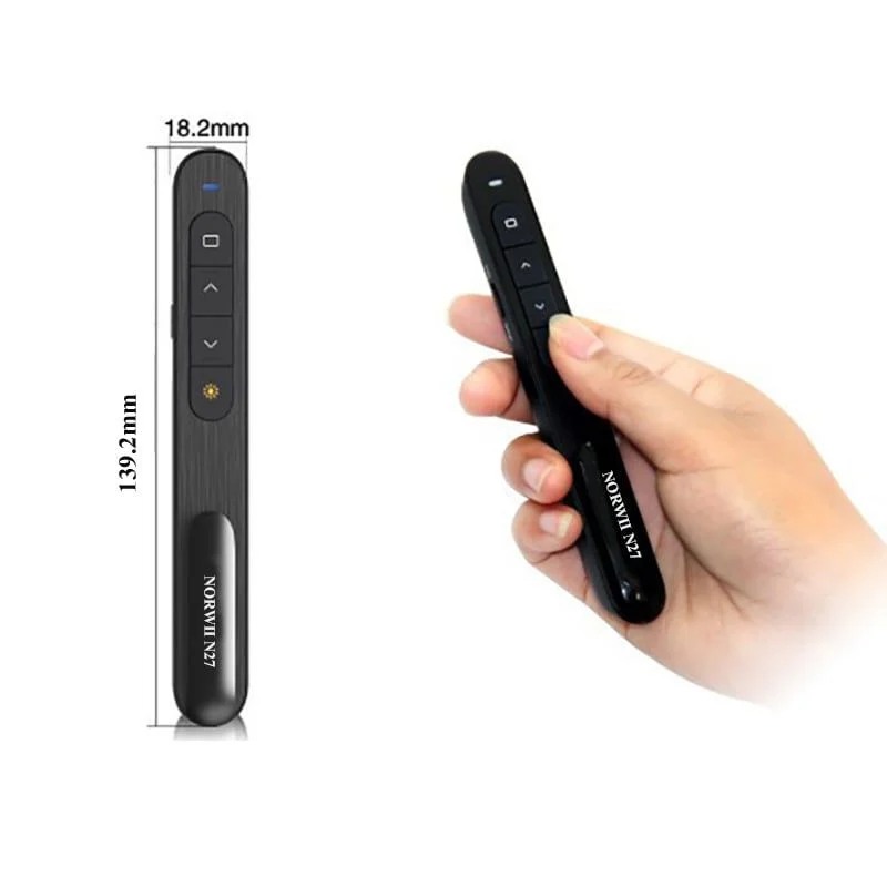 Bút trình chiếu laser Norwii N27 là thiết bị lý tưởng cho các buổi thuyết trình chuyên nghiệp, với nhiều tính năng nổi bật: - Ứng dụng thông minh: Điều khiển trình chiếu dễ dàng