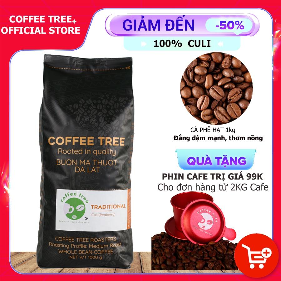 ✨Cà Phê Hạt CuLi Buôn Mê Thuột Nguyên Chất 100% - CoffeeTree - 1Kg - Hương Thơm Nhẹ, Vị Đắng Đậm, Hậu Vị Ngọt