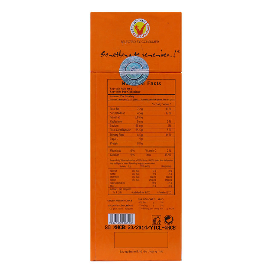 Thành phần / Ingredients: 100% Robusta. Hương vị / Flavor: Đắng đậm, sôcôla, mùi thuốc lá và hậu vị ngọt / Bold, chocolate, cigarette flavor and sweet after-taste. úi 500g / Bag 500gQuy cách / Type: