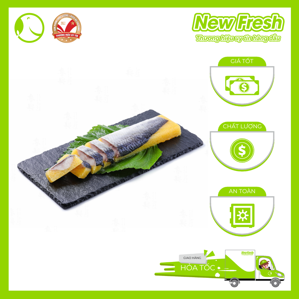 • Hạn sử dụng: 18 tháng Nếu bạn là fan của ẩm thực Nhật Bản thì không nên bỏ qua món ăn nổi tiếng này, được xem như món ăn truyền thống của đất nước này. Không đâu xa lạ chính là món Cá Trích Ép Trứng, món ăn được nhiều nhà hàng lớn nhỏ ưa chuộng không chỉ ở Nhật Bản mà còn ở các quốc gia khác. Cùng New Fresh tìm hiểu những điều thú vị về món ăn nổi tiếng này nhé !   Giới thiệu về Cá Trích Ép Trứng Cá Trích Ép Trứng trong tiếng Nhật được gọi là KAZUNOKO NISHIN một món ăn sashimi là sự kết hợp giữa thịt cá trích fillet và trứng cá chuồn ( tobiko ) được ép lại với nhau. Với quan niệm truyền thống của người Nhật Bản khi ăn món ăn này may mắn và niềm vui hạnh phúc sẽ tới trong cuộc sống, do đó món ăn luôn được nhiều thực khách ưa chuộng. Món ăn được ưa chuộng bởi hương vị thơm ngon, phần thịt cá trích được ngâm giấm nên có mùi vị đặc biệt thơm béo ngậy cùng với trứng cá chuồn giòn tan tạo cảm giác lạ miệng khi ăn. Công dụng của món cá trích ép trứng Không những ngon mà cá trích ép trứng lại có những công dụng vô cùng tuyệt vời cho sức khỏe. Phù hợp với tất cả mọi lứa tuổi, đặc biệt là nhóm tuổi trung niên và người cao tuổi.