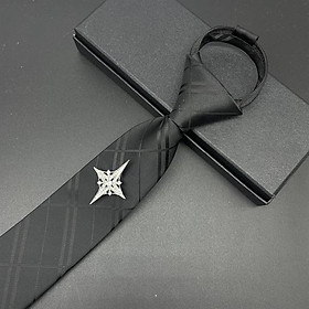 ✨Cà vạt 6cm dây kéo màu đen ziczac đính thoi đá trắng thiết kế mẫu mới t4/2024