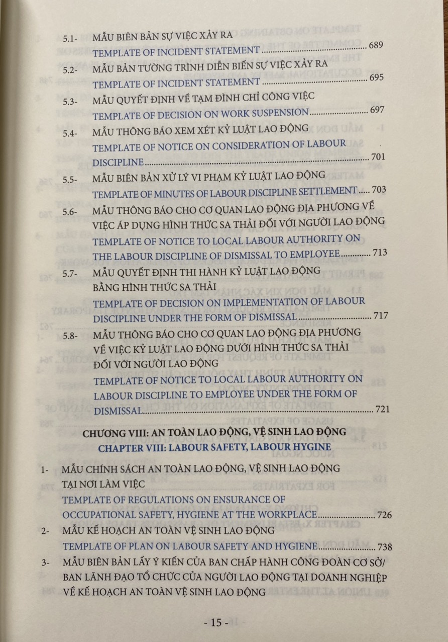 Cuốn sách ” Các Biểu Mẫu Nhân Sự Khó Tìm Liên Quan Đến Pháp Luật Lao Động ” dễ dàng tra cứu và tìm được các thông tin pháp luật lao động hữu ích và thực tế có liên quan đến công tác nhân sự và quản lý nhân sự trong doanh nghiệp. Chia sẻ hơn 20 năm kinh nghiệm tư vấn và cung cấp các giải pháp pháp lý cho cá nhân và doanh nghiệp trong và ngoài nước. Dành cho những người trực tiếp làm công tác nhân sự trong doanh nghiệp và những người gián tiếp thực hiện các công việc có liên quan đến nhân sự (ví dụ như ban giám đốc, kế toán) cũng như các luật sư nội bộ đang làm việc tại các doanh nghiệ Cung cấp gần như toàn bộ các biểu mẫu nhân sự cần thiết mà pháp luật lao động yêu cầu người sử dụng lao động phải có khi gặp tình huống cần xử lý trong mối quan hệ lao động theo quy định pháp luật. Các biểu mẫu nhân sự về pháp luật lao động được trình bày dưới dạng song ngữ Việt Anh giúp độc giả thuận tiện tham chiếu và áp dụng phù hợp. — Quyển sách gồm có 11 Chương   Giới thiệu 11 Chương trong Các biểu mẫu nhân sự khó tìm liên quan đến Pháp luật Lao động.     Chương 1- Các biểu mẫu về Tuyển dụng lao động và thử việc Chương 2- Các biểu mẫu về Hợp đồng lao động Chương 3- Các biểu mẫu về Đào tạo nghề Chương 4- Các biểu mẫu về Đối thoại tại nơi làm việc Chương 5- Các biểu mẫu về Tiền lương Chương 6- Các biểu mẫu về Thời giờ làm việc và thời giờ nghỉ ngơi Chương 7- Các biểu mẫu về Nội quy lao động và kỷ luật lao động Chương 8- Các biểu mẫu về An toàn lao động và vệ sinh lao động Chương 9- Các biểu mẫu về Nhóm lao động đặc thù Chương 10 – Các biểu mẫu về Thành lập công đoàn cơ sở Chương 11 – Các biểu mẫu về Tranh chấp lao động và đình công —– Lý do bạn nên sở hữu quyển sổ tay này Quyển sách Các biểu mẫu nhân sự khó tìm liên quan đến Pháp luật Lao động giúp người làm công tác nhân sự giảm thiểu được thời gian tra cứu và soạn thảo các biểu mẫu pháp luật lao động cũng như vận dụng các quy định của pháp luật liên quan đúng và nhanh chóng. Các biểu mẫu không chỉ giúp cho độc giả các sườn tài liệu, mà tùy theo từng tình huống phát sinh cụ thể của từng vụ việc tại từng thời điểm khác nhau trong doanh nghiệp và trong các mối quan hệ lao động mà độc giả sẽ có những điều chỉnh, bổ sung phù hợp cho doanh nghiệp của mình. Tiết kiệm thời gian, công sức và tiền bạc cho độc giả trong quá trình tìm kiếm và lựa chọn từ các nguồn tư vấn pháp lý vô cùng đa dạng và phức tạp. Thống kê đầy đủ các biểu mẫu nhân sự quan trọng và cần thiết mà được trình bày dưới dạng song ngữ Việt Anh liên quan đến các vấn đề thường phát sinh trong mối quan hệ lao động giữa doanh nghiệp và người lao động.   xin trân trọng giới thiệu đến bạn đọc!