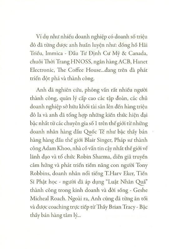Kết luận: Nhiều nội dung trong cuốn sách là những trải nghiệm tôi từng đi qua, những kiến thức tôi đã nghiên cứu và thực hành trong suốt thời gian tôi bắt đầu công việc Đào Tạo của mình, với những điều đó tôi tin chắc chắn bạn cũng sẽ có cho mình một cách nhìn nghiêm túc hơn về cuộc đời của chính mình và thay đổi để ngày càng hoàn thiện hơn. Và đó là hành trình tự: “Cách Mạng Bản Thân” của chính mình!