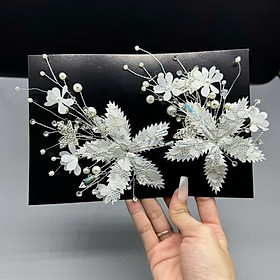 Trâm cài tóc cô dâu thiết kế ngọc trai và hoa 5 canh mềm mại, nữ tính. Tôn lên vẻ đẹp cho mái tóc xinh. Thích hợp trang điểm, make up cô dâu, trang điểm