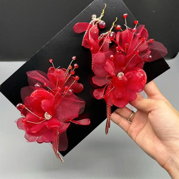 Cài tóc cô dâu hoa voan đỏ đô đính đá mẫu mới t11/2024Cài tóc cô dâu hoa voan đỏ đô đính đá mẫu mới t11/2024