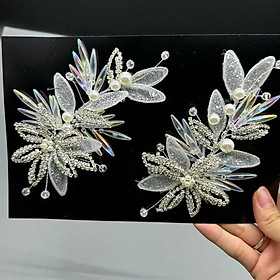 Trâm cài tóc cô dâu thiết kế ngọc trai và hoa 5 canh mềm mại, nữ tính. Tôn lên vẻ đẹp cho mái tóc xinh. Thích hợp trang điểm, make up cô dâu, trang điểm