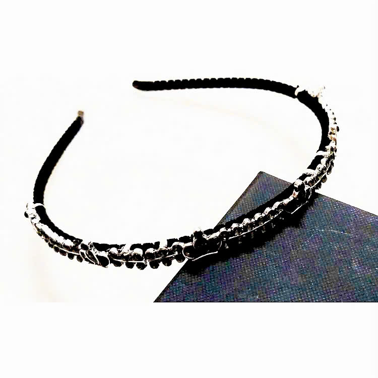 ✨Cài tóc đen đính đá hình vương miện đá xanh đen