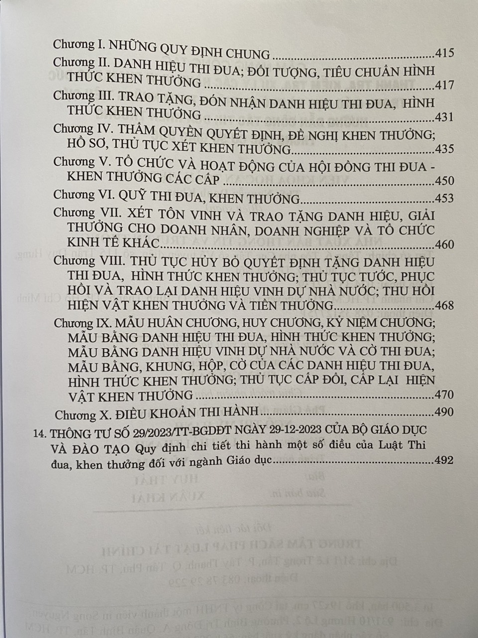 Phần thứ tư. Luật Thi đua, khen thưởng và Hướng dẫn công tác thi đua, khen thưởng trong các cơ sở giáo dục