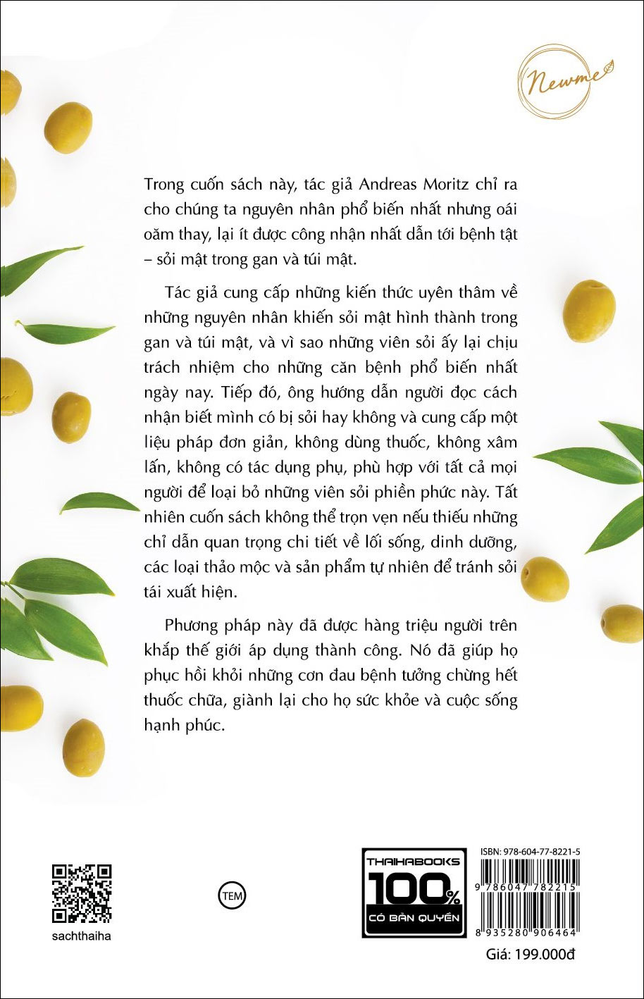 Thông qua cuốn sách “Cẩm nang hướng tẩy sỏi gan mật – Phương pháp diệu kỳ cho sức khoẻ dài lâu” của tác giả Andreas Morits, bạn sẽ học được cách nhẹ nhàng loại bỏ vài trăm viên sỏi mật trong một lần tẩy sỏi. Kích thước của chúng dao động từ hạt vừng đến hạt óc chó nhỏ (2 – 3cm), trong một số trường hợp hiếm hoi, sỏi có thể to bằng quả bóng chơi golf. Quá trình tẩy sỏi gan thực sự diễn ra trong khoảng dưới 14 giờ và có thể được thực hiện dễ dàng tại nhà vào cuối tuần.
