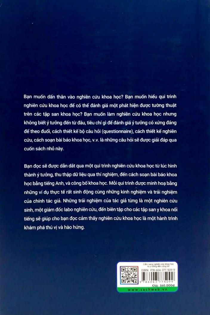 Cuốn sách “Cẩm nang nghiên cứu khoa học từ ý tưởng đến công bố” được soạn ra để giúp cho các bạn muốn dấn thân vào công việc nghiên cứu khoa học. Nhiều học sinh và sinh viên thường tự hỏi bắt đầu nghiên cứu khoa học từ đâu, ý tưởng nghiên cứu xuất phát từ nguồn nào, phương pháp nghiên cứu ra sao, và công bố kết quả ngiên cứu ở đâu. Đó là những câu hỏi cơ bản trong qui trình nghiên cứu khoa học. Qua 21 chương sách, tác giả sẽ giải đáp những câu hỏi trên và kèm theo những ví dụ thực tế giúp bạn đọc hiểu rõ hơn về qui trình nghiên cứu khoa học.