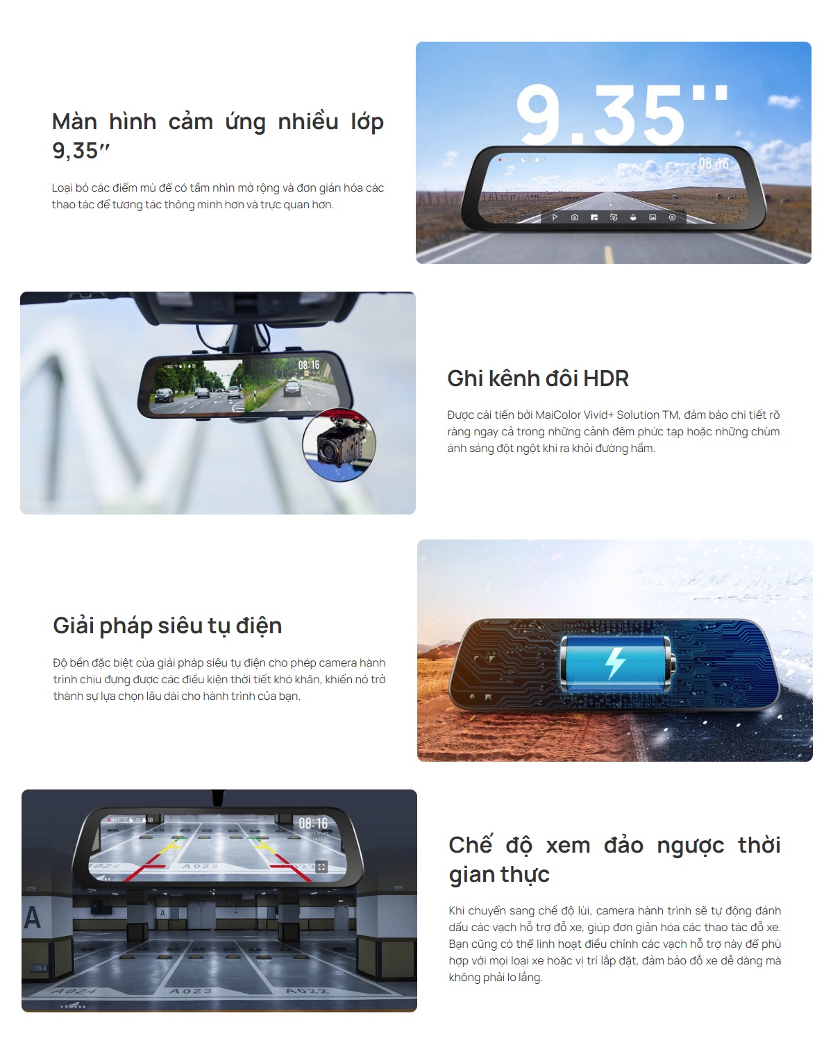 ✨Camera hành trình gương 70mai S500 tích hợp cam lùi, màn hình cảm ứng 9.35inch, 3K HDR góc quay rộng 138° – Hàng chính hãng
