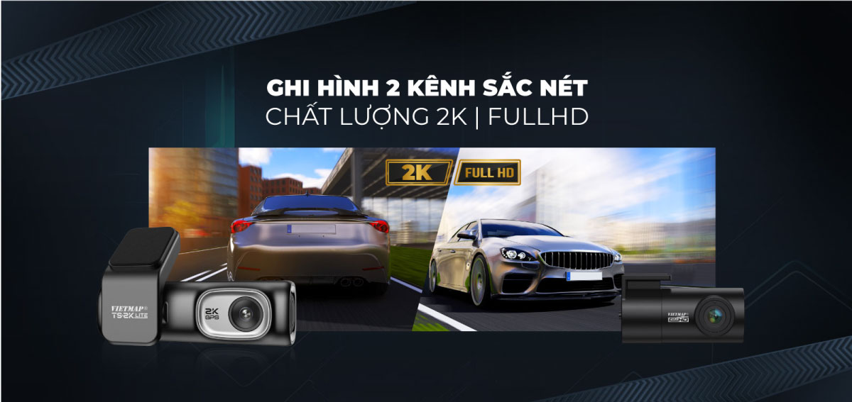 VIETMAP TS-2K LITE Camera hành trình với ống kính ghi hình góc rộng, chất lượng ghi hình vượt trội 2K ở kênh trước và Full HD 1080p ở kênh sau.