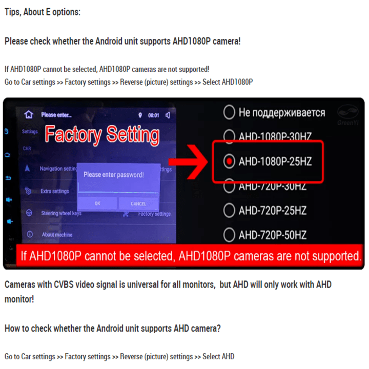 - Camera lùi ô tô AHD có thể tương thích được với tất cả các màn hình trên ô tô tích hợp cổng AV và có độ phân giải 1080P