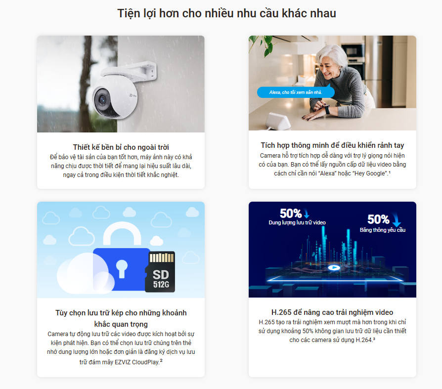 – Lưu trữ thẻ nhớ microSD tối đa 512GB, EZVIZ CloudPlay