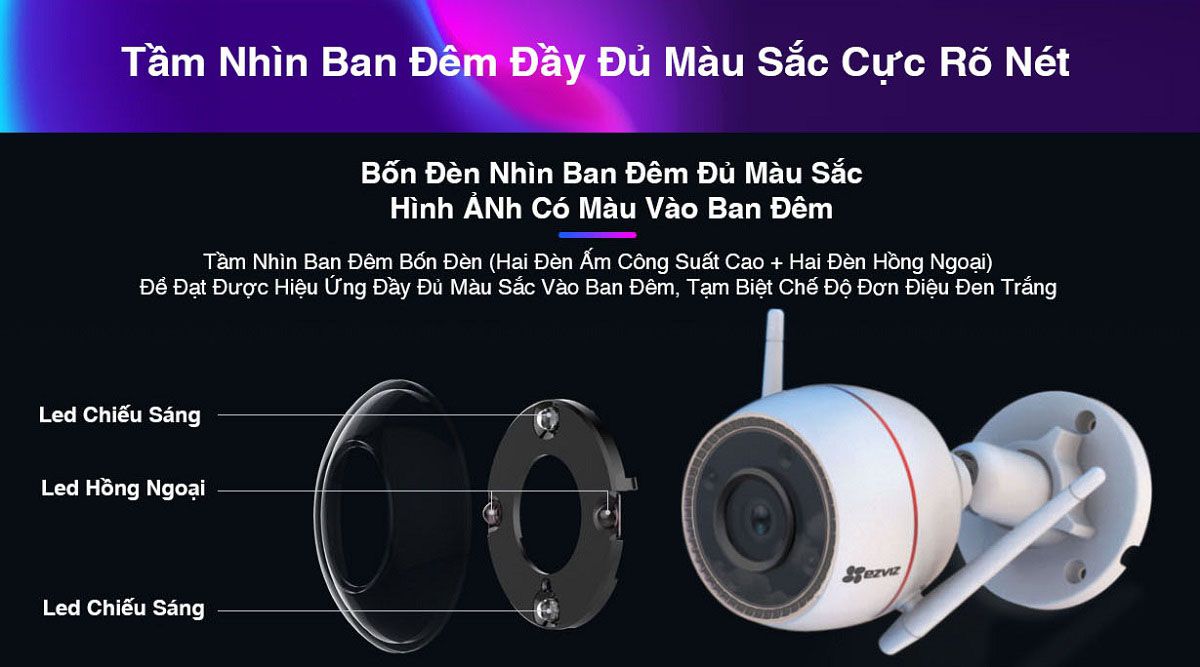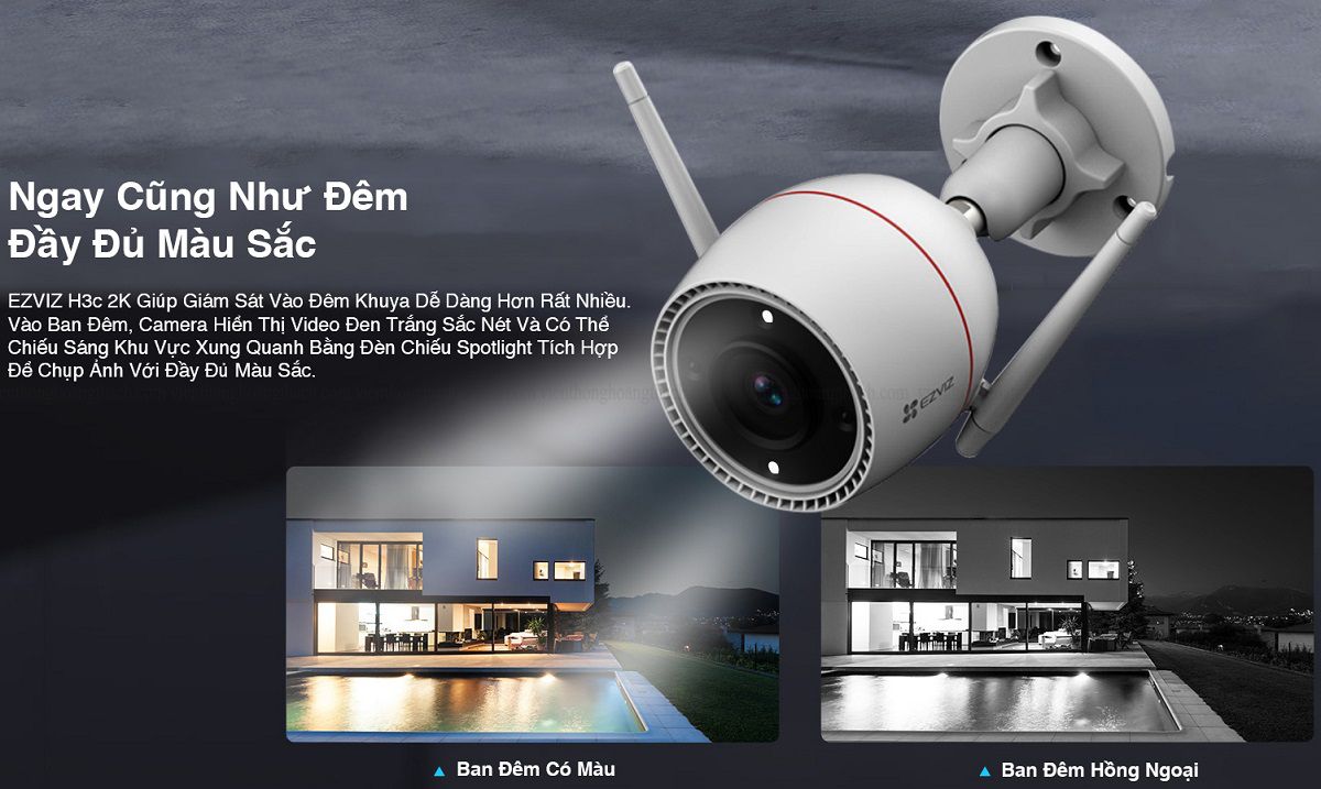 Camera Cố Định Ngoài Trời Ezviz H3C 2MP - Độ phân giải Full HD - Có Màu Ban Đêm