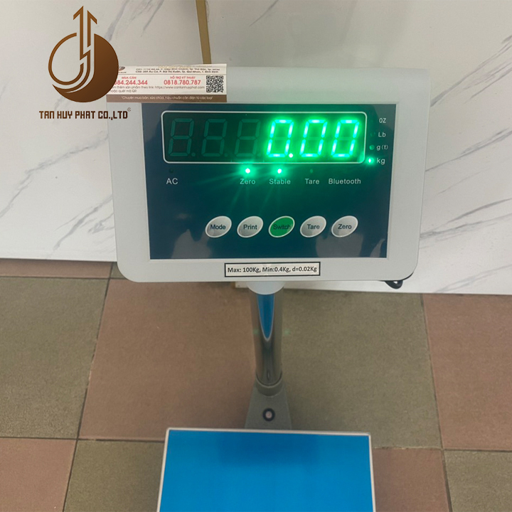 THÔNG SỐ SẢN PHẨM Phân loại lựa chọn (Mức cân tối đa/ Độ chia kiểm tương ứng): 30kg/0.005kg, 60kg/0.01kg, 100kg/0.02kg, 150kg/0.02kg, 200kg/0.05kg. Đơn vị cân mặc định: kg. Cấp chính xác: Class III OIML. Hiển thị: Màn hình LED 6 số xanh, rõ, dễ nhìn. Đèn báo trạng thái: Báo pin/ Ổn định/ Trừ bì. Chế độ nghỉ: Không hỗ trợ. Nguồn cấp: Pin sạc 6V-4AH bật sử dụng liên tục 72 giờ/ Nguồn điện cắm sạc 220V-50Hz (Điện dân dụng) với dây sạc đi kèm. Cổng kết nối: Cổng RS232 đi kèm. Kích thước mặt bàn cân inox: 30 cm x 40 cm (dài x rộng). Chiều cao mặt bàn cân inox so với mặt đất: 11 cm. Chiều cao đầu cân so với mặt đất: 80 cm. Chất liệu: Đầu vỏ nhựa ABS, Khung thép vuông 3 sơn tĩnh điện, mặt bàn cân bằng inox. Mặt cân Inox có thể tháo rời vệ sinh hoặc lật ngược tạo thành đĩa cân lõm giúp hạn chế rơi hàng khi cân. Khả năng chống nước: Khuyến cáo không sử dụng trong môi trường có nước. Thương hiệu: AMCELL - Mỹ (Lắp ráp tại Việt Nam). Bộ sản phẩm: Cân, Dây sac, Hướng dẫn sử dụng tiếng Việt, Phiếu bảo hành nhà cung cấp, Tem thông tin nhà cung cấp.