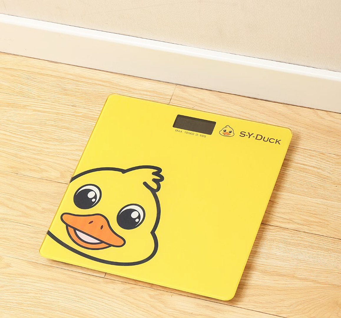 Cân Sức Khỏe 180kg Sai Số 50gr SY DUCK Chú Vịt Vàng Chất Liệu Bề Mặt Kính Chịu Lực Dùng Nguồn Pin