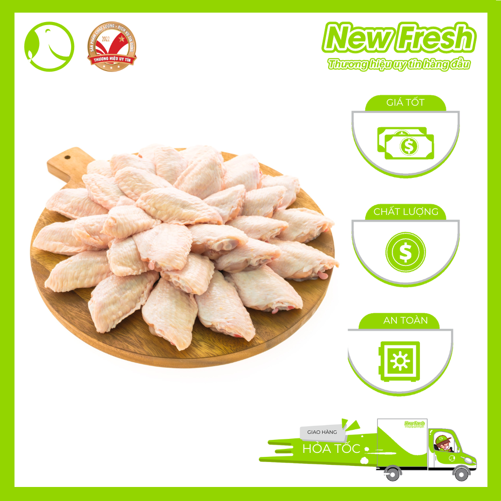 Với sản phẩm tươi sống, trọng lượng thực tế có thể chênh lệch khoảng 10%. Tên sản phẩm: Cánh Gà Khúc Giữa Xuất xứ: USA Quy cách đóng gói: khay 1 kg Hạn sử dụng: 24