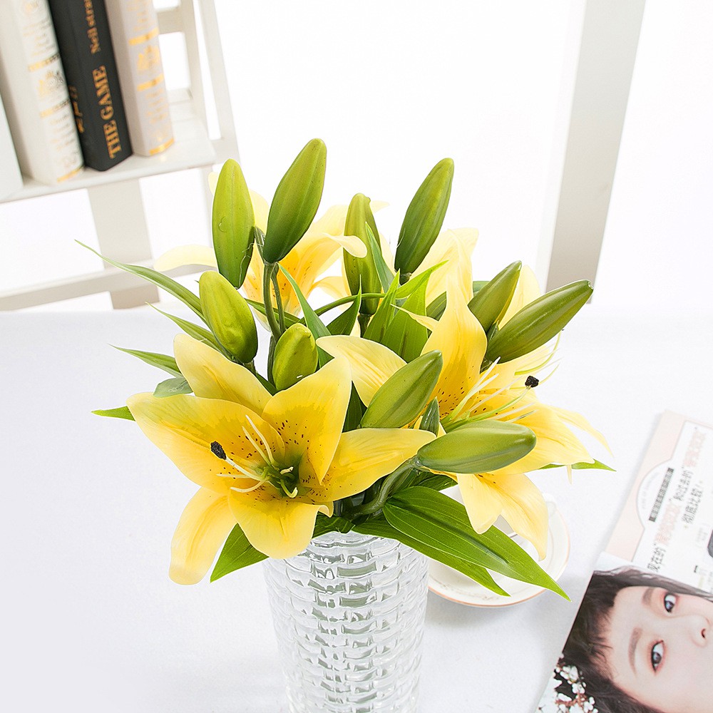 Hoa ly giả mà như thật - CÀNH 3 BÔNG + 1 NỤ CAO SU XỊN NHƯ THẬT - CÀNH DÀI 1M