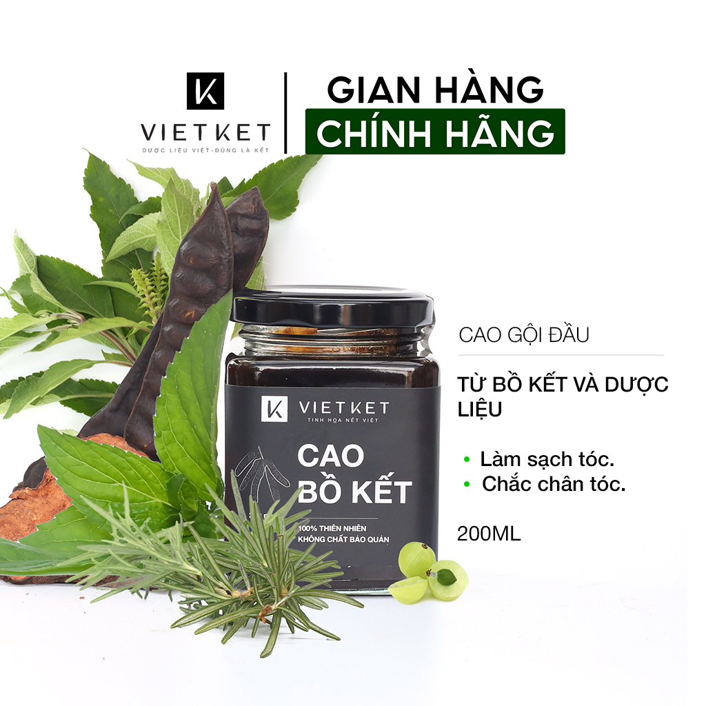 Cao gội đầu bồ kết bạc hà VIETKET 200ml - giảm gàu, giảm rụng, tóc khỏe. Thành phần: Nước, bồ kết, Bạc hà, Me rừng, Hương nhu, Hương thảo, Hoắc hương. Công dụng: Làm sạch