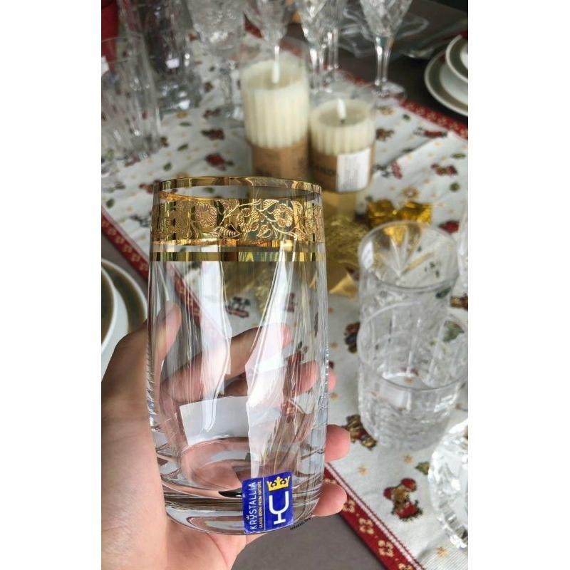 Bộ 6 ly uống bia, whisky, nước pha lê 230 ml mạ vàng 24k Tiệp Khắc