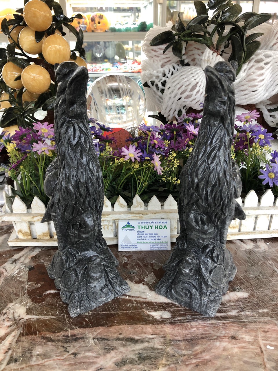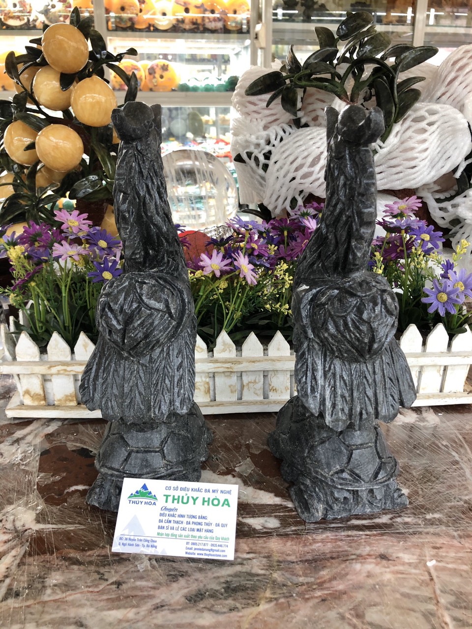 ✨Cặp Hạc đứng rùa thờ cúng đá cẩm thạch vân đen - Cao 30 cm