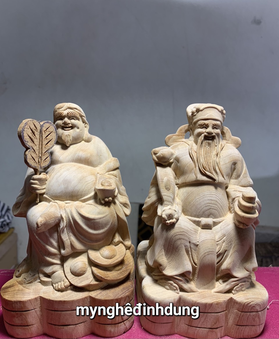 _ Cặp ông thần tài và ông thổ địa được làm bằng chất liệu gỗ ngọc am liền khối tự nhiên 100% _ kt cao 15x9x9cm _ Tượng được chạm khắc gọt tỉa vô cùng