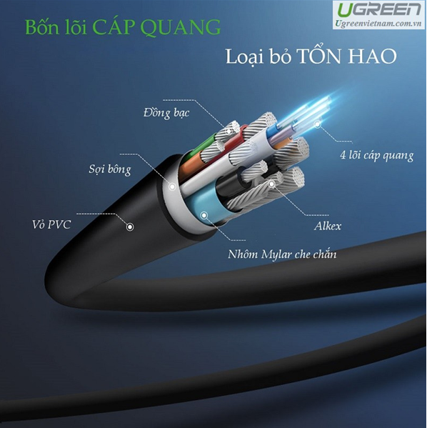 - Lõi dây : bao gồm 4 lõi cáp quang, 7 lõi đồng mạ thiếc