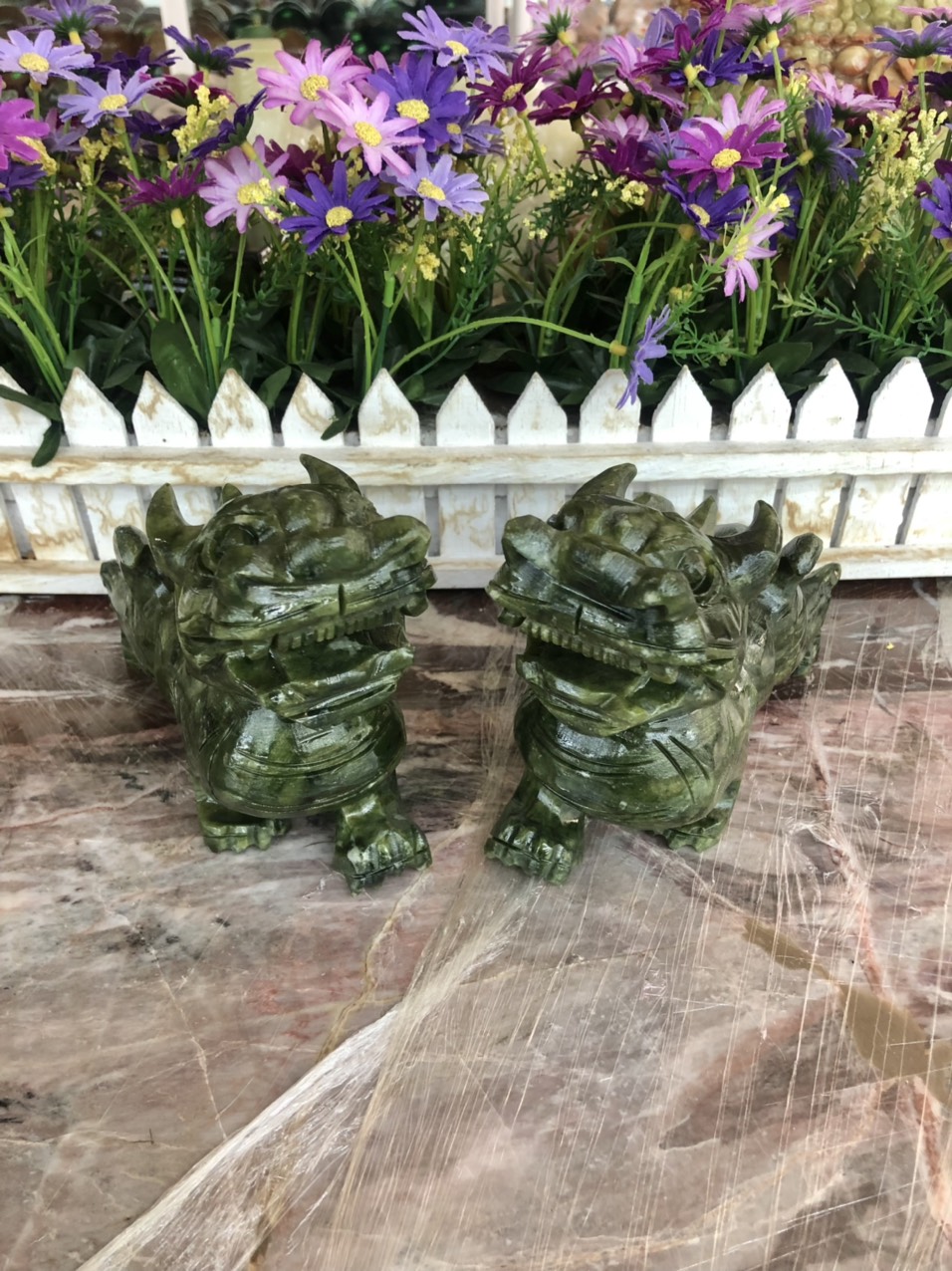 Mua tại TiktokHợp mệnh Mộc - Hỏa Chất liệu: Đá ngọc Ấn Độ Kích thước: Dài 17 cm x Rộng 6 cm x Cao 13 cm Khối lượng: 2,5 kg/ cặp