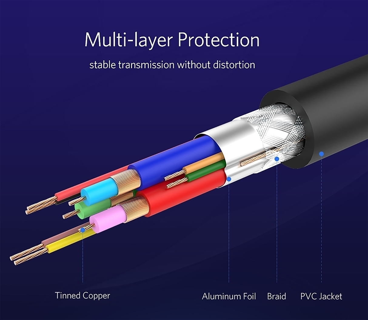 Đầu jack đúc sẵn mạ vàng 24k để đảm bảo đầy đủ truyền dẫn mà không có bóng mờ và mất dữ liệu như cáp thông thường.