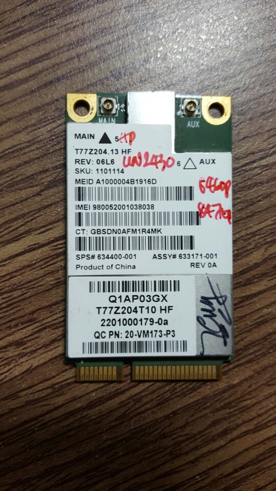 - Tên sản phẩm: Card wwan 3G Sierra MC8355 Gobi 3000 - HP UN2430