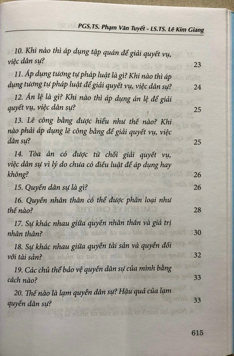 Câu Hỏi Thường Gặp Trong Lĩnh Vực Dân Sự Tác giả: PGS.TS. Phạm Văn Tuyết - LS.TS. Lê Kim Giang Nhà xuất bản: NXB Tư Pháp Nhà phát hành: Dân Hiền Năm xuất bản: 2022
