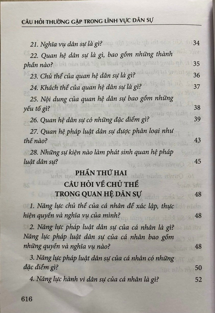 Với mục đích góp phần nâng cao hiệu quả thực thi pháp luật và đáp ứng nhu cầu nghiên cứu, tìm hiểu của bạn đọc. Nhà xuất bản Tư pháp phát hành cuốn sách: "Câu hỏi thường gặp trong lĩnh vực dân sự"