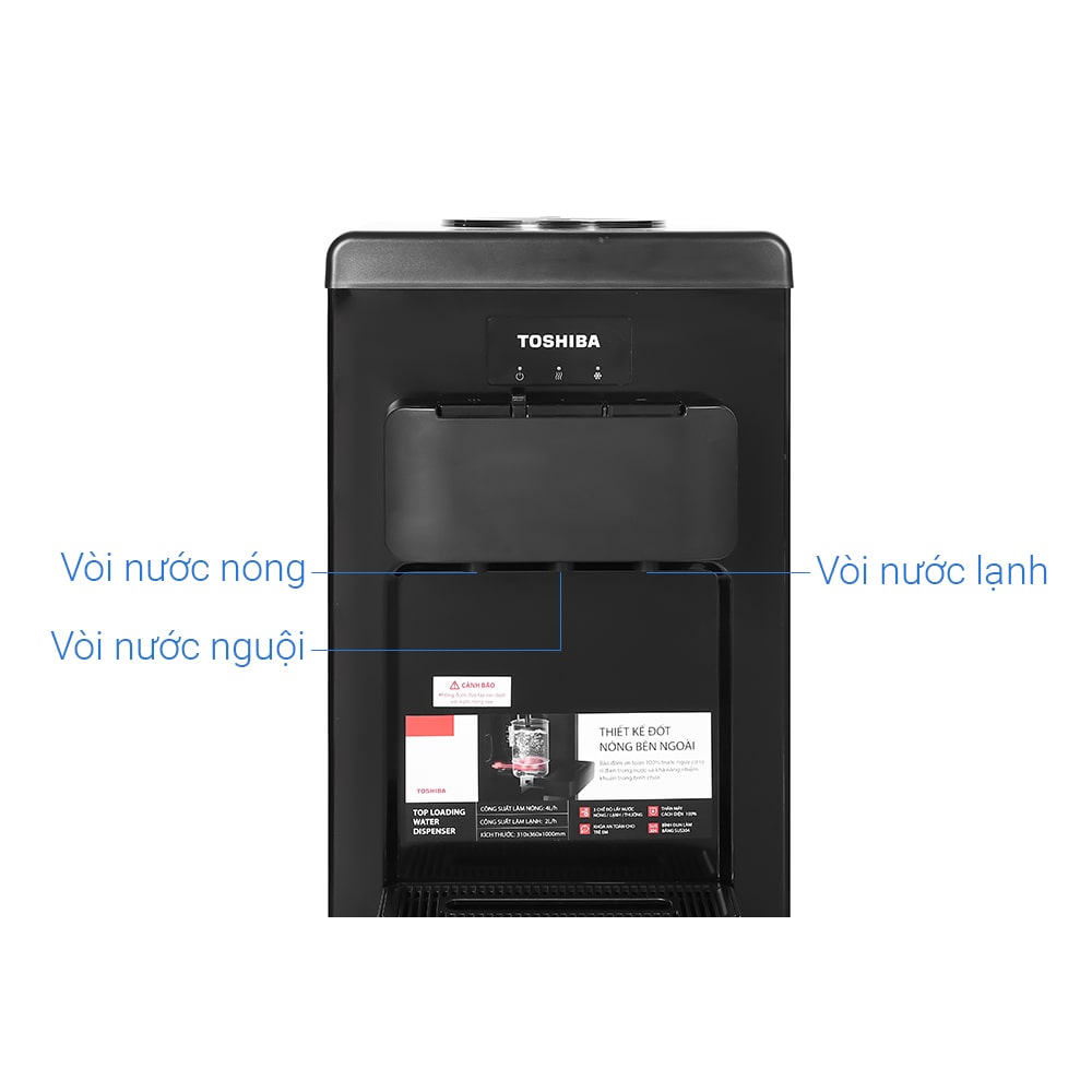 Kiểu dáng cây nước nóng lạnh Toshiba hiện đại, màu đen thanh lịch, kết cấu chắc chắn, tạo điểm nhấn cho không gian phòng khách, phòng làm việc, phòng bếp gia đình, công ty Nhiệt độ làm