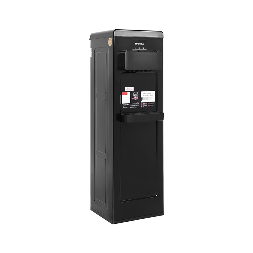 Kiểu dáng cây nước nóng lạnh Toshiba hiện đại, màu đen thanh lịch, kết cấu chắc chắn, tạo điểm nhấn cho không gian phòng khách, phòng làm việc, phòng bếp gia đình, công ty
