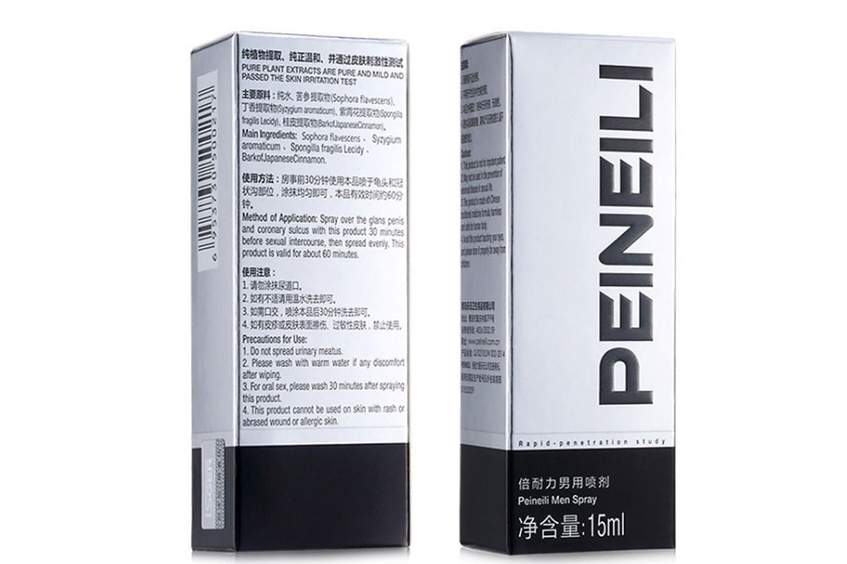 - Sản phẩm được chiết xuất 100% từ thiên nhiên, an toàn tuyệt đối. Đặc biệt chai xịt Peineili không gây dị ứng, không cảm giác nóng rát khi xịt nhiều. Ngoài công dụng chính là kéo dài thời gian quan hệ giúp anh em tự tin hơn khi vào cuộc.