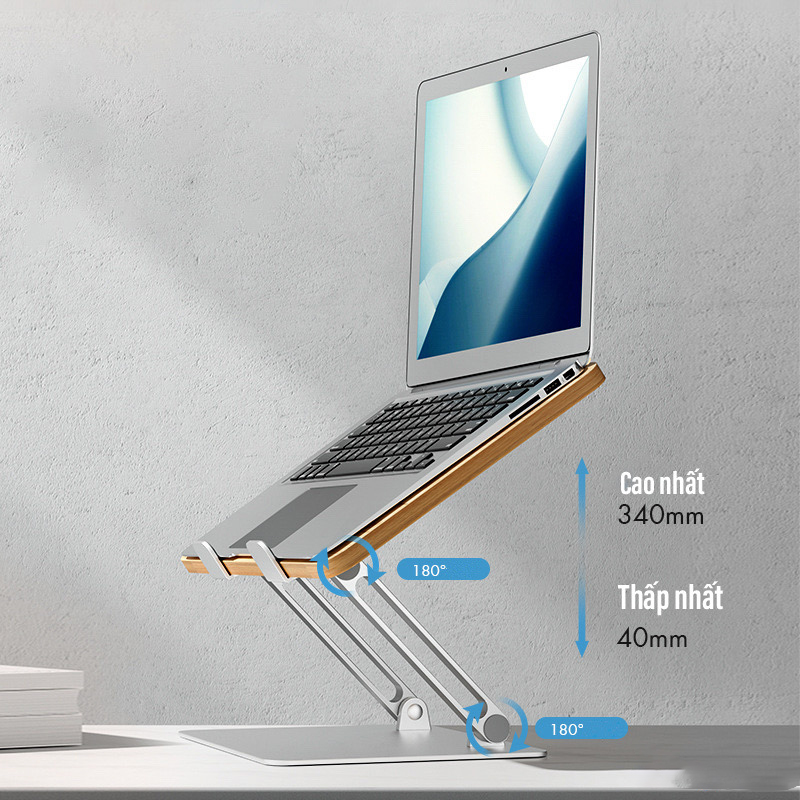 Mua tại TiktokChân đế giá đỡ Laptop UP mặt gỗ cho MacBook, Laptop, Tablet - Bạc